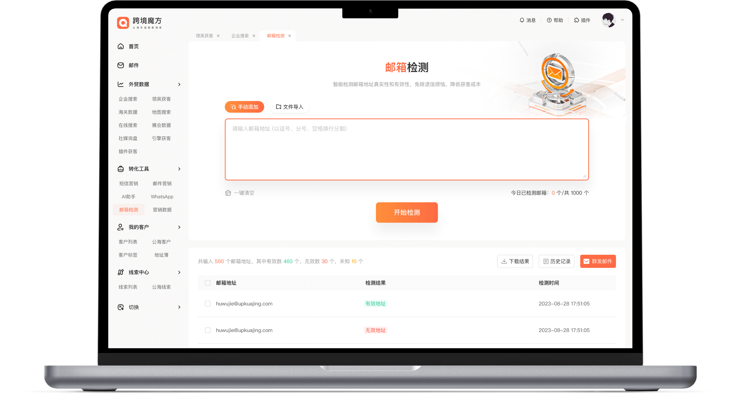 将验证后的邮箱列表在跨境魔方邮件营销系统中群发开发信,一键营销,高效触达客户;批量发送开发信,
